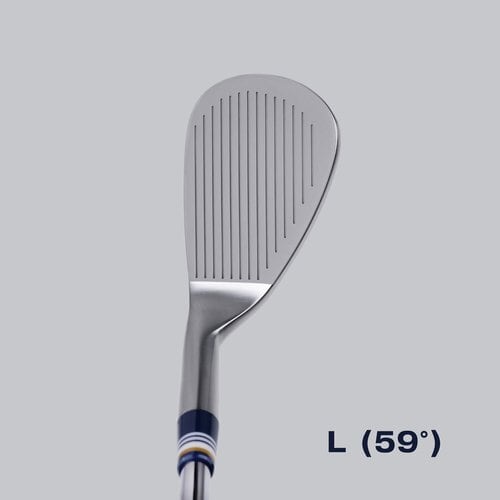The L (59) wedge features aggressive trailing edge grinding. The head weight is distributed more towards the toe, allowing the face to naturally open when the club is grounded.